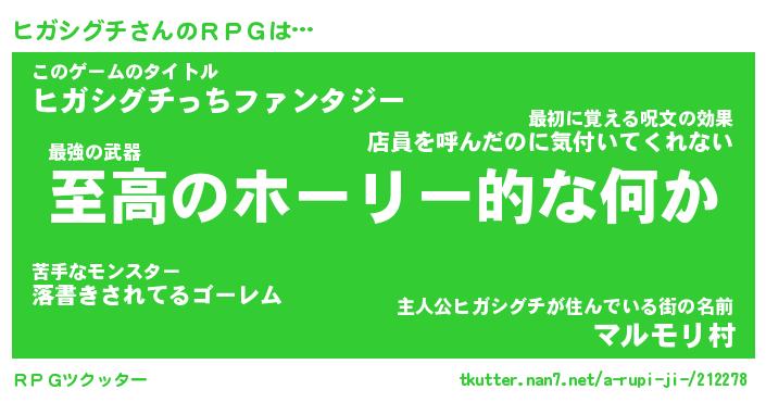 | 男性向けラノベタイトル風あだ名 | 『ヒガシグチアートオンライン』 |