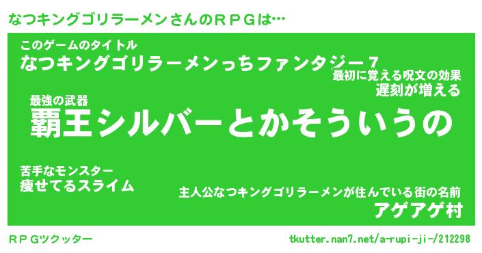 | 胡散臭い通販商品みたいなあだ名 | 『億万長者になれる水晶球…その名も「なつキングゴリラーメン」』 |