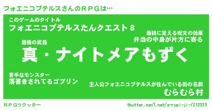 | 男性向けラノベタイトル風あだ名 | 『フォエニコプテルスアートオンライン』 |