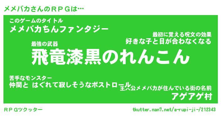 | ファンタジー風あだ名 | 『メメフェル』『エターナルメメバカー』 |