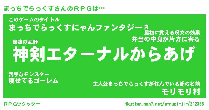 | 男性向けラノベタイトル風あだ名 | 『まっちでらっくすの憂鬱』 |