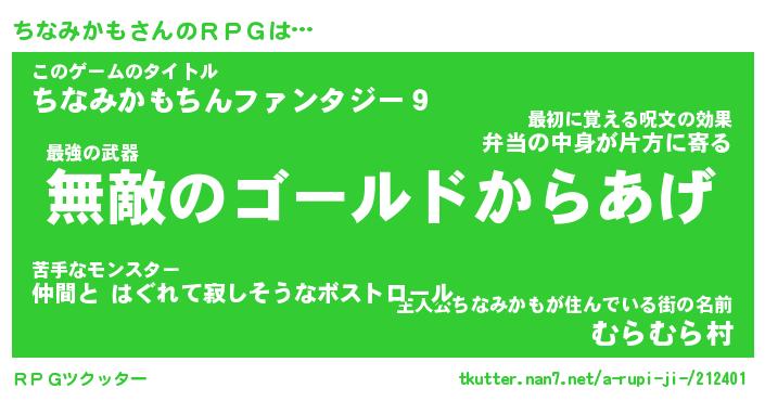 | ヒーロー風カッコイイあだ名 | 『スーパーチナミカモ』『暗黒騎士チナ』 |
