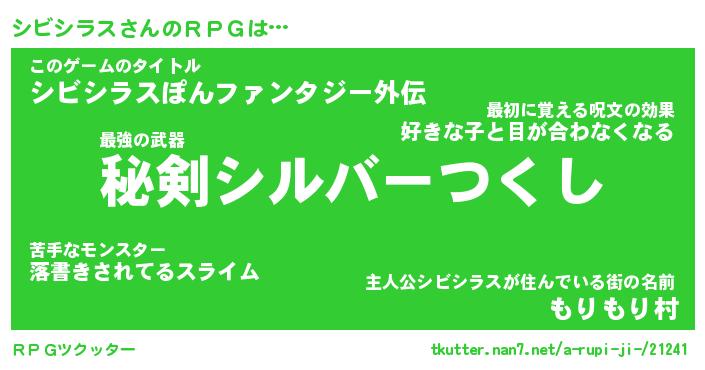| ファンタジー風あだ名 | 『シビフェル』『エターナルシビシラスー』 |