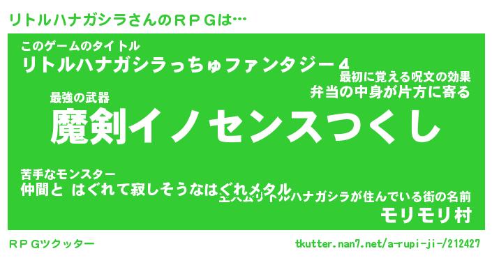 | ヒーロー風カッコイイあだ名 | 『スーパーリトルハナガシラ』 |