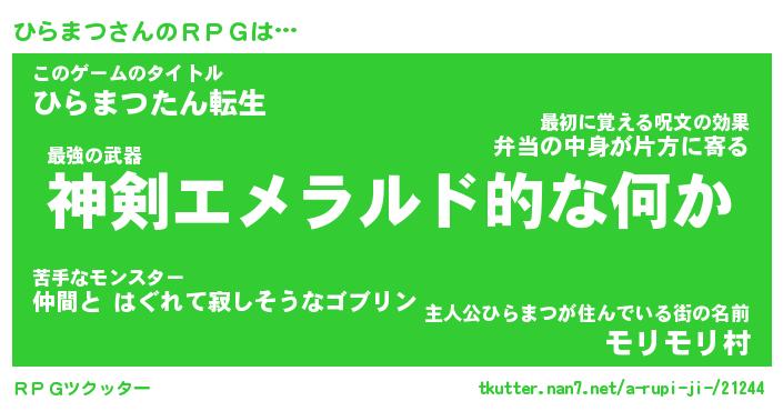 | 胡散臭い通販商品みたいなあだ名 | 『モテモテ間違いなし霊験あらたかなお札…その名も「ひらまつ」』 |