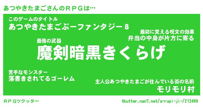 | 男性向けラノベタイトル風あだ名 | 『あつやきたまごの憂鬱』 |