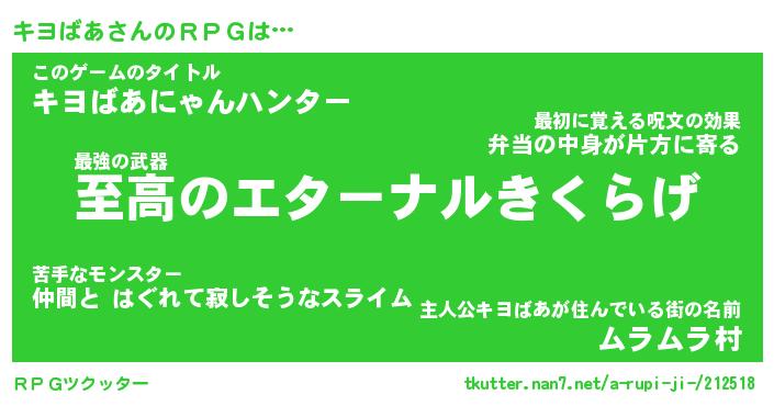 | 男性向けラノベタイトル風あだ名 | 『キヨバアアートオンライン』 |