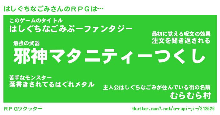 | 男性向けラノベタイトル風あだ名 | 『ハシグチナゴミアートオンライン』 |