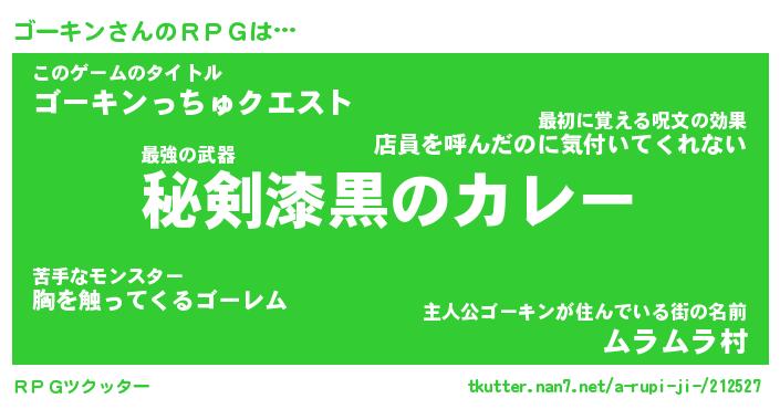 | 料理風あだ名 | 『節約★ゴーキンと油揚げの玉子丼』 |