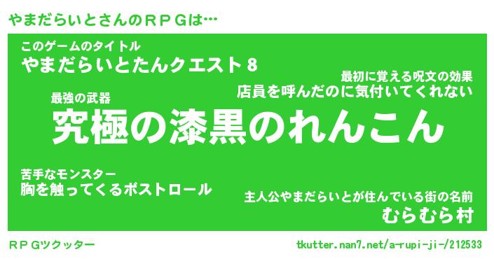 | 料理風あだ名 | 『節約★やまだらいとと油揚げの玉子丼』 |