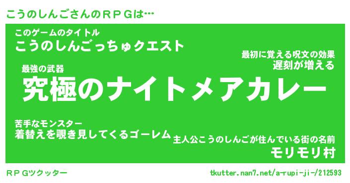 | 男性向けラノベタイトル風あだ名 | 『こうのしんごの憂鬱』 |