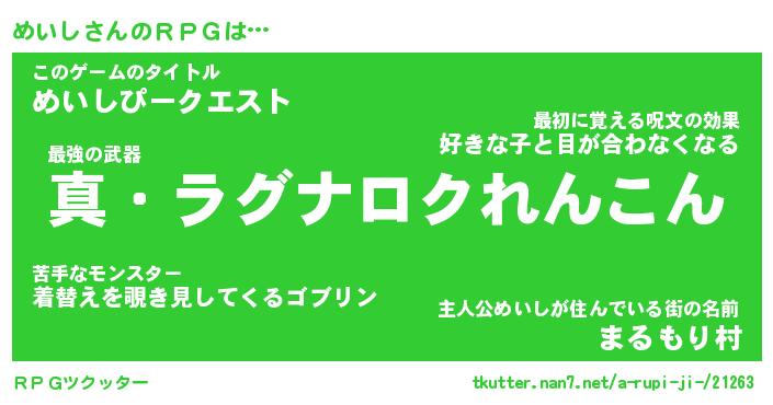 | 伝説のあだ名 | 『封印されし竜騎士めいし』 |