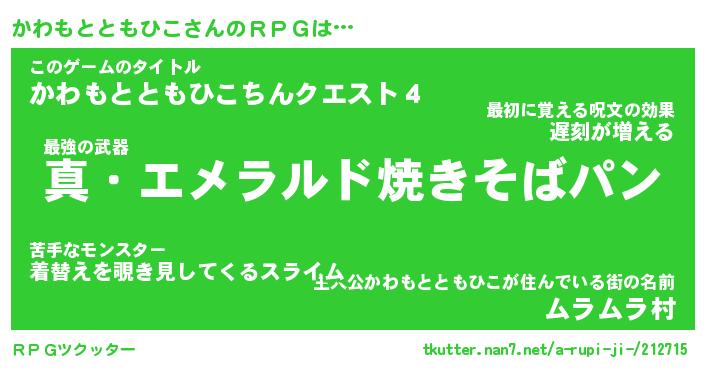 | 胡散臭い通販商品みたいなあだ名 | 『億万長者になれる霊験あらたかなお札…その名も「かわもとともひこ」』 |