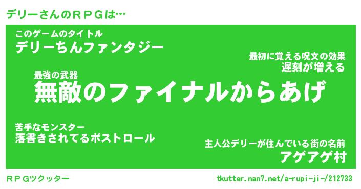 | ファンタジー風あだ名 | 『デリフェル』『エターナルデリーー』 |