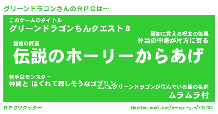 | 料理風あだ名 | 『節約★グリーンドラゴンと油揚げの玉子丼』 |