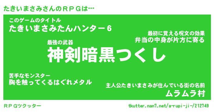 | ヘコむあだ名 | 『たきにゅー』『なまこ酢』『たきを』 |