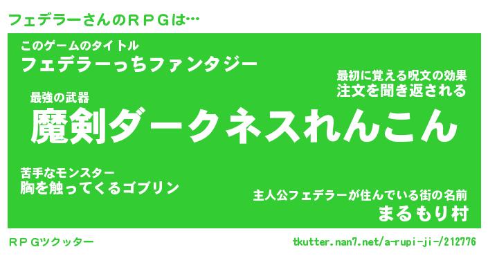 | ファンタジー風あだ名 | 『フェフェル』『エターナルフェデラーー』 |
