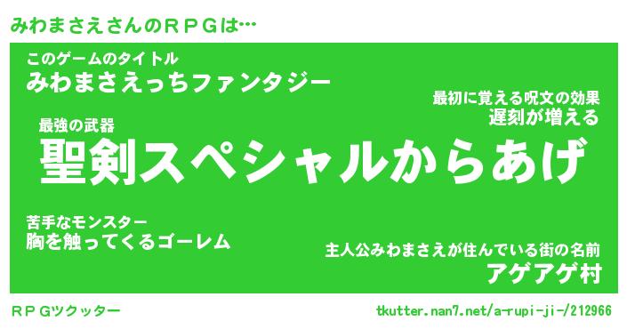| ファンタジー風あだ名 | 『ミワフェル』『エターナルミワマサエー』 |