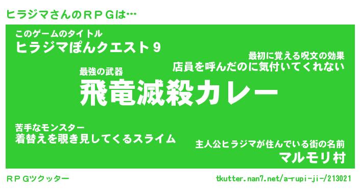 | 男性向けラノベタイトル風あだ名 | 『ヒラジマアートオンライン』 |