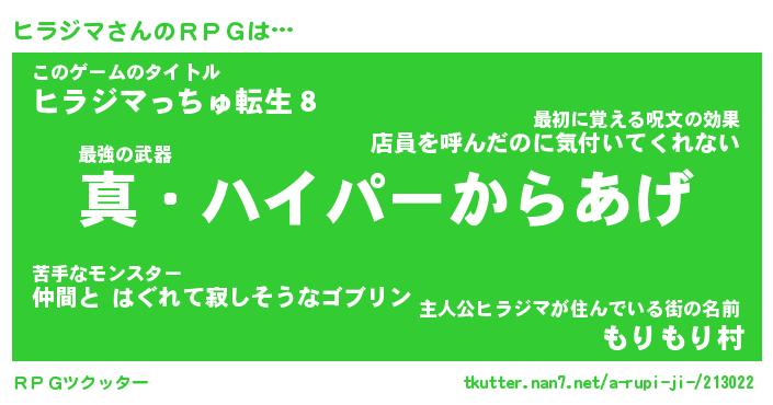 | 男性向けラノベタイトル風あだ名 | 『ヒラジマアートオンライン』 |