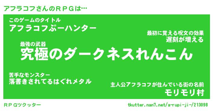 | ファンタジー風あだ名 | 『アフフェル』『エターナルアフラコフー』 |