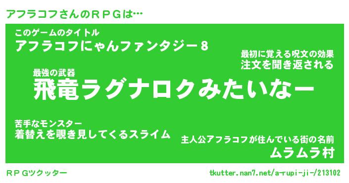 | 男性向けラノベタイトル風あだ名 | 『アフラコフアートオンライン』 |