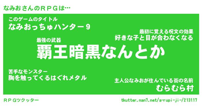 | 男性向けラノベタイトル風あだ名 | 『ナミオアートオンライン』 |