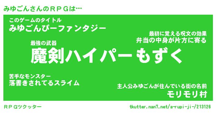| ファンタジー風あだ名 | 『ミユフェル』『エターナルミユゴンー』 |