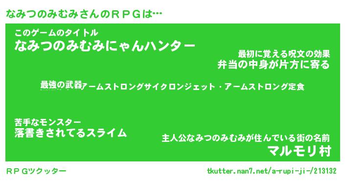 | 男性向けラノベタイトル風あだ名 | 『ナミツノミムミアートオンライン』 |