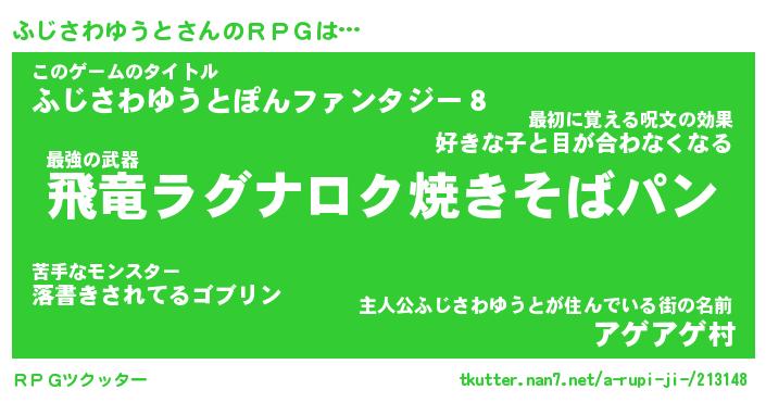 | 男性向けラノベタイトル風あだ名 | 『フジサワユウトアートオンライン』 |