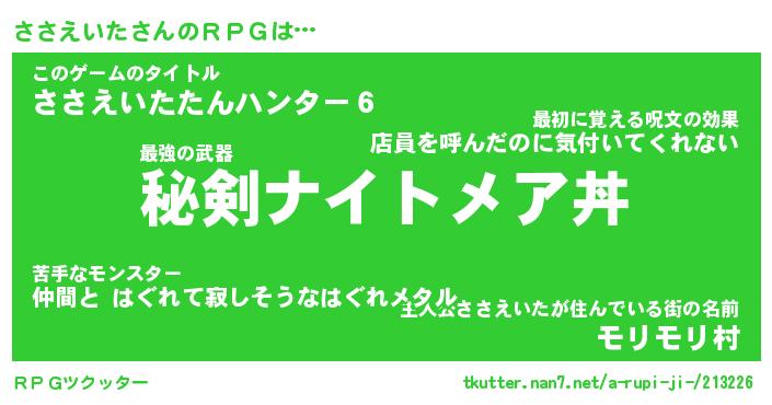 | 料理風あだ名 | 『節約★ささえいたと油揚げの玉子丼』 |