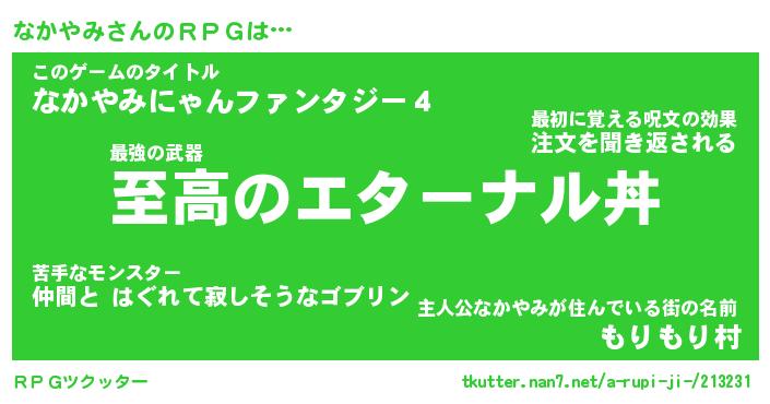 | 料理風あだ名 | 『節約★なかやみと油揚げの玉子丼』 |