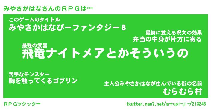 | ヒーロー風カッコイイあだ名 | 『スーパーミヤサカハナ』『炎刃騎士ミヤ』 |