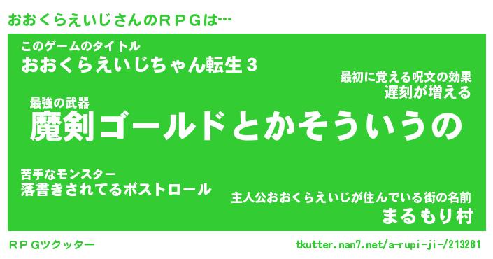 | 伝説のあだ名 | 『伝説のスナイパーおおくらえいじ』 |