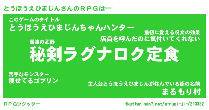 | 男性向けラノベタイトル風あだ名 | 『とうほうえひまじんの憂鬱』 |