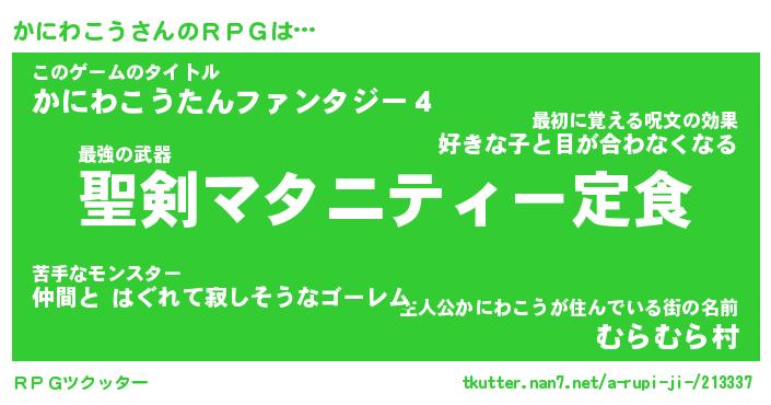 | ファンタジー風あだ名 | 『カニフェル』『エターナルカニワコウー』 |