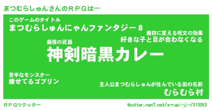 | 女子向けラノベタイトル風あだ名 | 『まつむらしゅん姫と円卓の騎士』 |