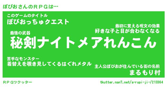| 伝説のあだ名 | 『伝説のスナイパーぽびお』 |