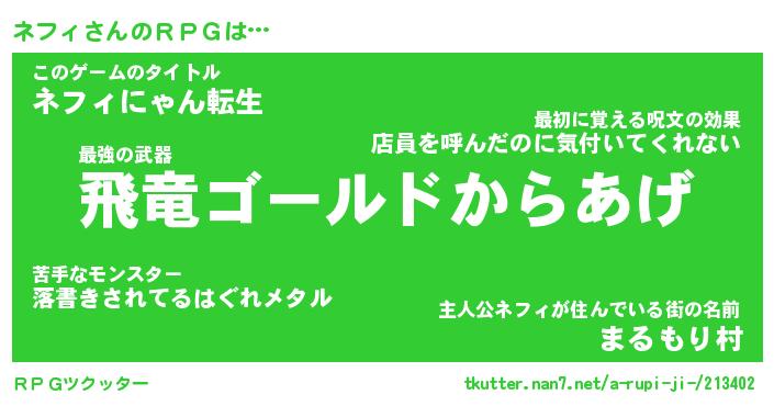 | 男性向けラノベタイトル風あだ名 | 『ネフィアートオンライン』 |