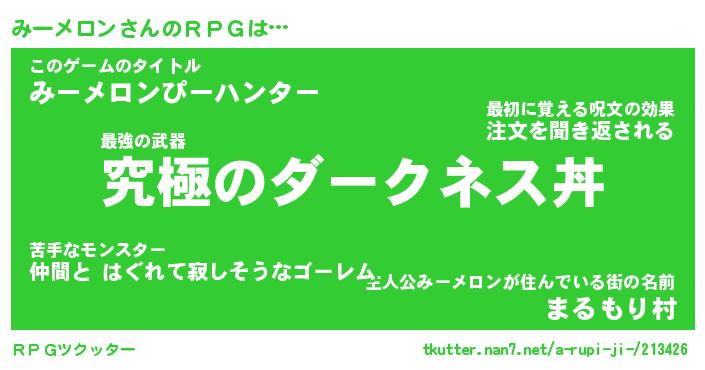 | 料理風あだ名 | 『節約★みーメロンと油揚げの玉子丼』 |
