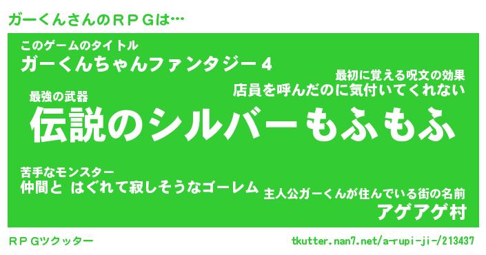 | ヘコむあだ名 | 『ガーもー』『牛乳』『ガー太郎』 |