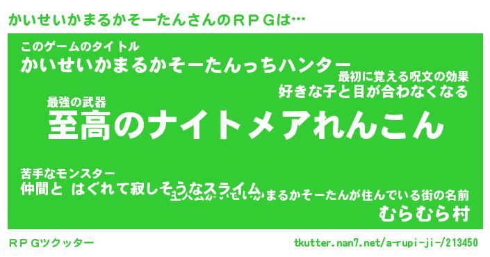 | ツイッター | かいせいかまるかそーたんさんのツイッターID『dendenmushi_nyan』 |