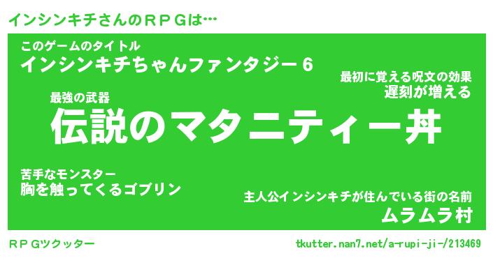 | 男性向けラノベタイトル風あだ名 | 『インシンキチの憂鬱』 |