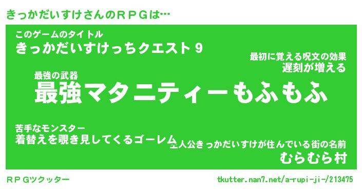 | 胡散臭い通販商品みたいなあだ名 | 『モテモテ間違いなし霊験あらたかなお札…その名も「きっかだいすけ」』 |