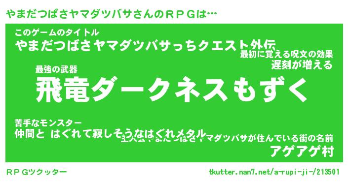 | 胡散臭い通販商品みたいなあだ名 | 『億万長者になれる水晶球…その名も「やまだつばさヤマダツバサ」』 |