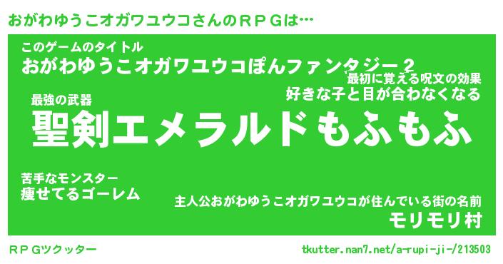 | 胡散臭い通販商品みたいなあだ名 | 『必ず成功する霊験あらたかなお札…その名も「おがわゆうこオガワユウコ」』 |