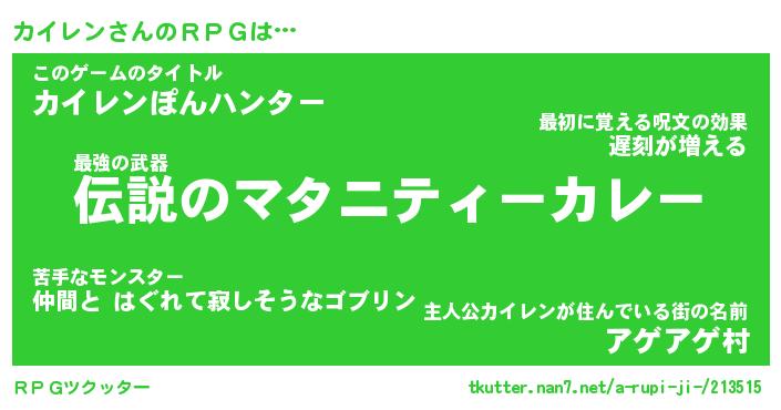 | 男性向けラノベタイトル風あだ名 | 『カイレンの憂鬱』 |