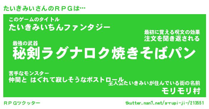 | 伝説のあだ名 | 『伝説の竜騎士たいきみい』 |
