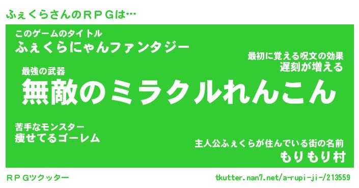 | ファンタジー風あだ名 | 『フェフェル』『エターナルフェクラー』 |