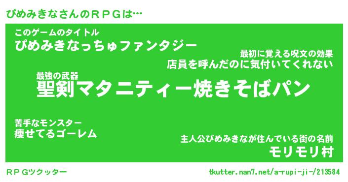 | 胡散臭い通販商品みたいなあだ名 | 『必ず成功する霊験あらたかなお札…その名も「ぴめみきな」』 |